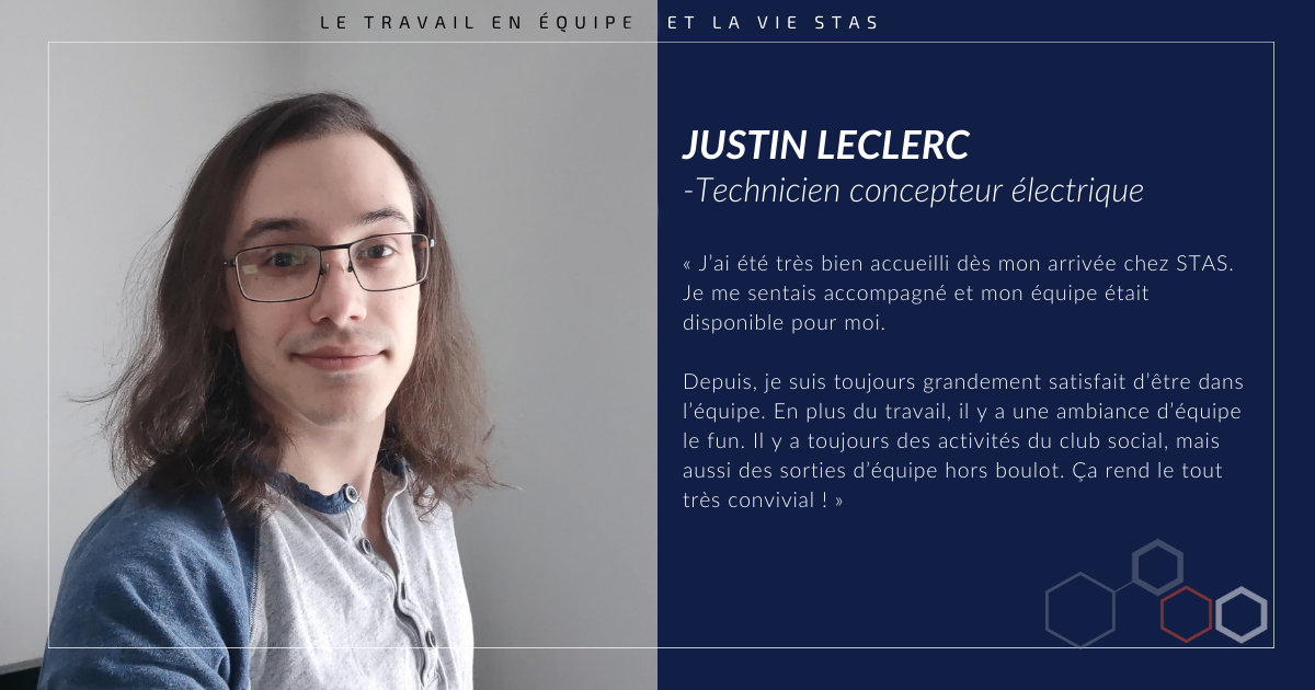 Justin Leclerc est technicien concepteur électrique depuis juillet 2021 au sein de l’équipe de STAS.