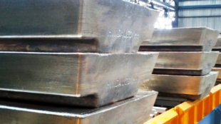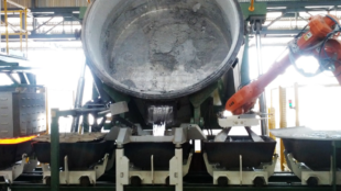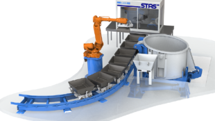 The sow moulds are supported on individual trolleys that are interlinked to form a continuous chain. After pouring, the metal is skimmed via the robot skimming device which removes any dross. Solidified sow ingots are removed from their moulds via a vacuum demoulding device and transferred to the sow stacking machine. The sows then travel along conveyors where they are weighed, marked and stacked. The completed sow stacks can then be removed via a forklift.